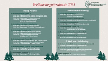 Als PDF zum Herunterladen: Übersicht aller Weihnachtsgottesdienste im Nachbarschaftsraum.