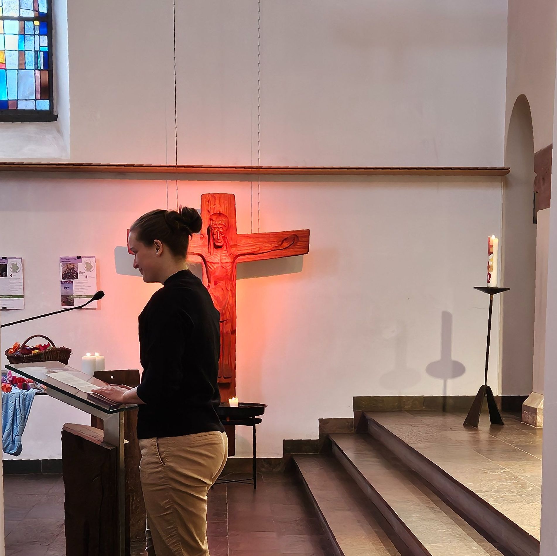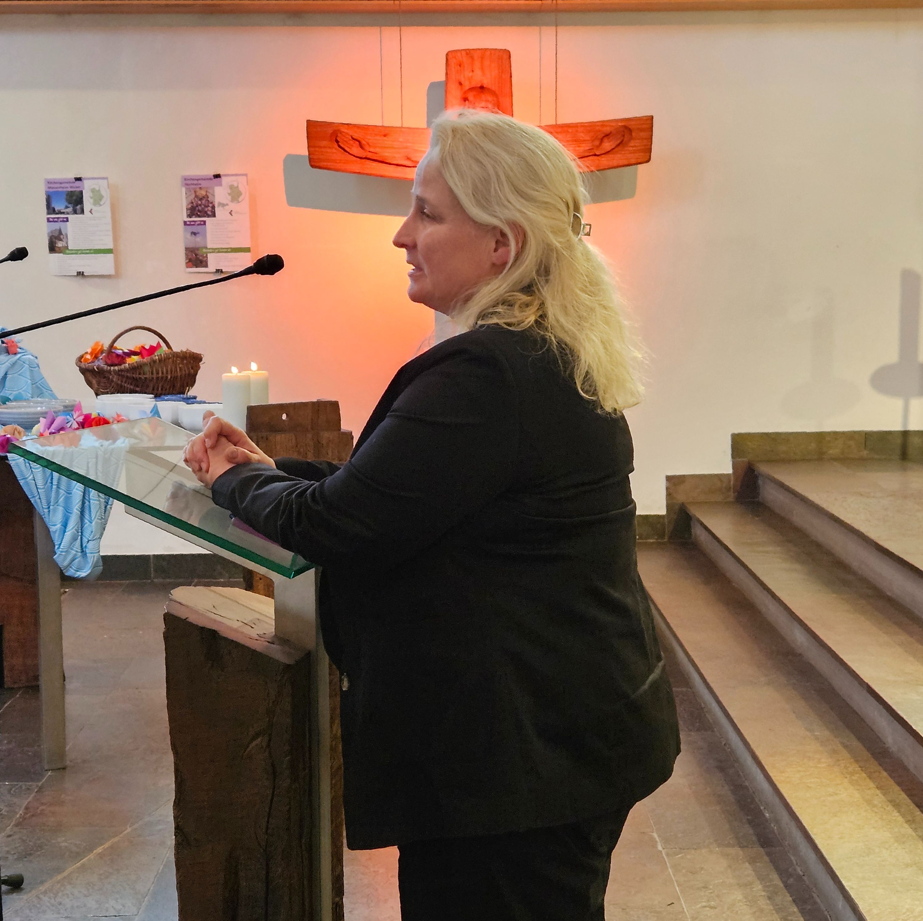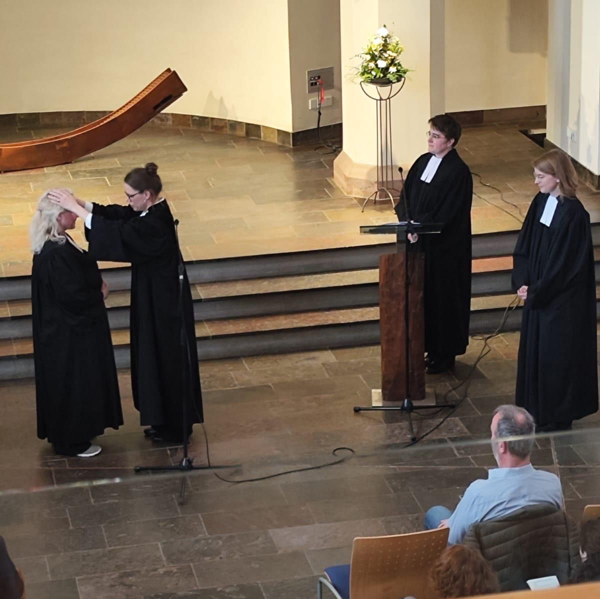 Anschließend folgten der Dank und die offizielle Entpflichtung von Mirjam Kaiser als Pfarrerin in Hochheim und Delkenheim durch die stellvertretende Dekanin, bevor sie auch von Olivia Rahmsdorf und ihrer früheren Kollegin Anne-Bärbel Ruf-Körver den Segen für ihre neue Lebensphase empfing. Zahlreiche Ehrenamtliche äußerten in ihren Fürbitten nochmals ihre Dankbarkeit für die gemeinsame Zeit mit Pfarrerin Kaiser.