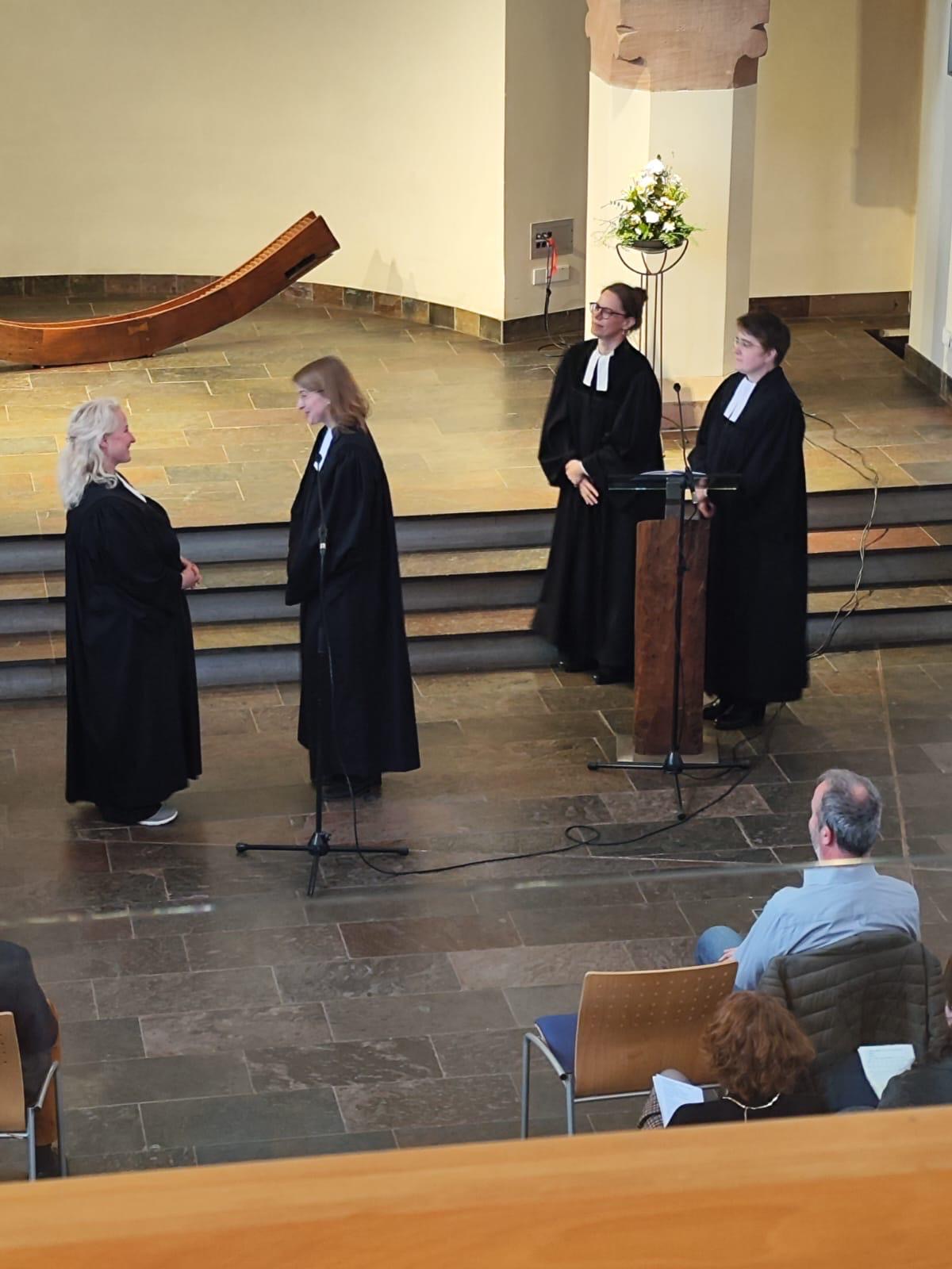 Am 30. März 2025 wurde Mirjam Kaiser in einem festlichen Gottesdienst aus dem aktiven Dienst in den Wartestand entpflichtet. Stellvertretende Dekanin Miriam Lehmann, Pfarrerin Anne-Bärbel Ruf-Körver und Pfarrerin Olivia Rahmsdorf segneten ihre Kollegin für den Weg, auf den Gott sie berufen hat. Die Gemeindemitglieder der Gemeinden Delkenheim und Hochheim konnten im Gottesdienst noch einmal Abschied von ihrer langjährigen Pfarrerin nehmen und ihr zeigen, welche Vielfalt an Blüten ihr Dienst in den Gemeinden hat aufgehen und wachsen lassen.