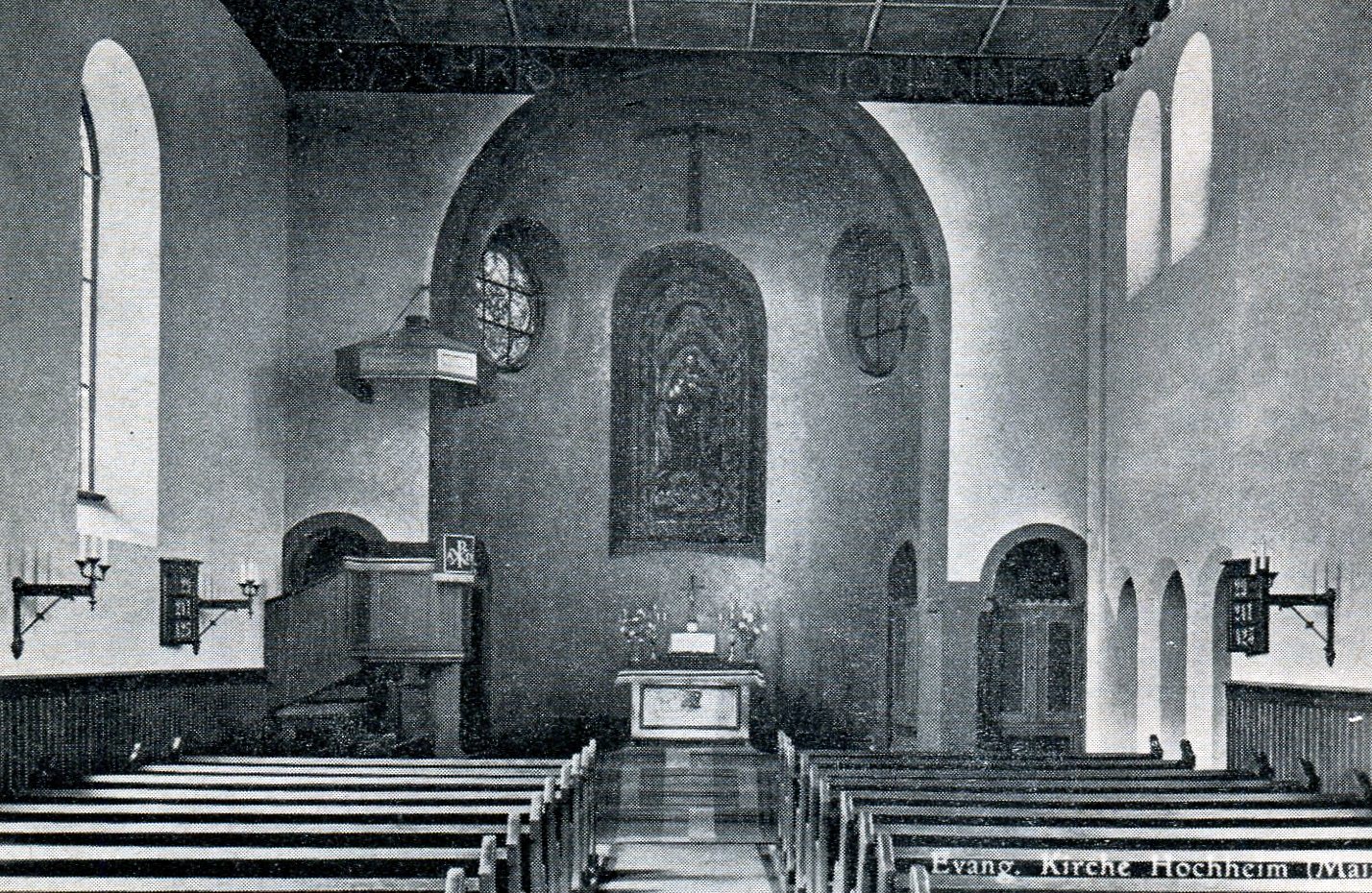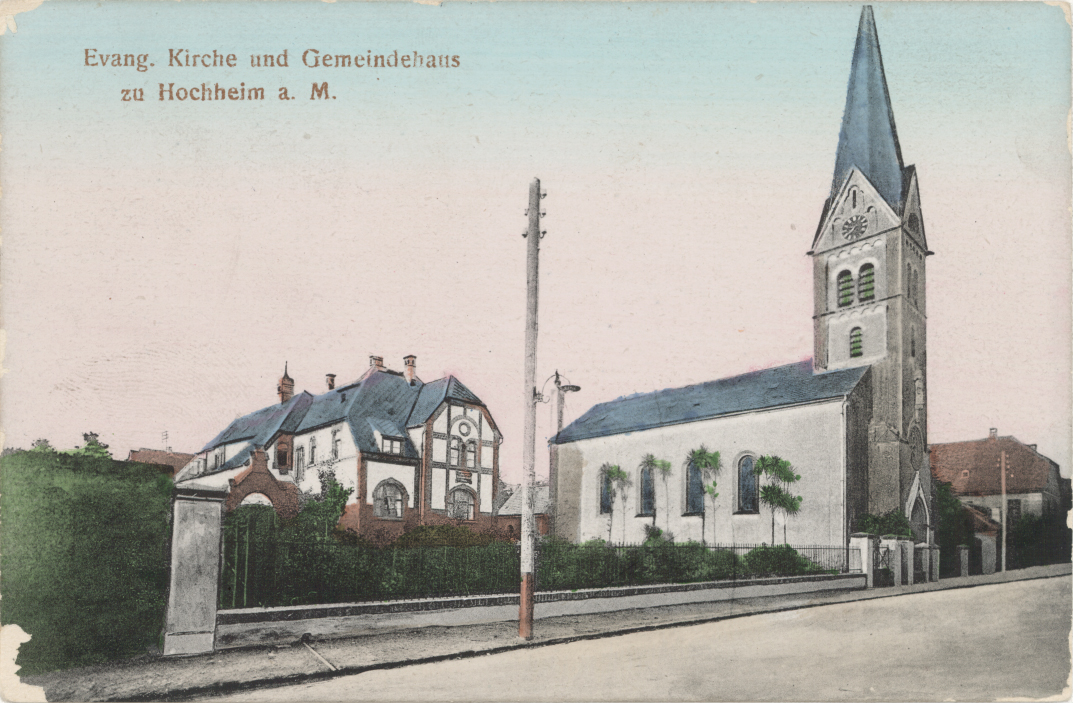 Im Dekanat Wallau, im "blauen Ländchen", sind die evangelischen Kirchen alle viel älter als unsere mit ihren immerhin 130 Jahren. Das "Ländchen" gehörte zu Nassau und war evangelisch, Hochheim dagegen gehörte zu Mainz und war rein katholisch. Erst 1805 kamen die ersten Evangelischen in unsere Stadt. Die kleine Schar, die zunächst vom Pfarrer in Massenheim betreut wurde, wuchs und wurde aktiv.